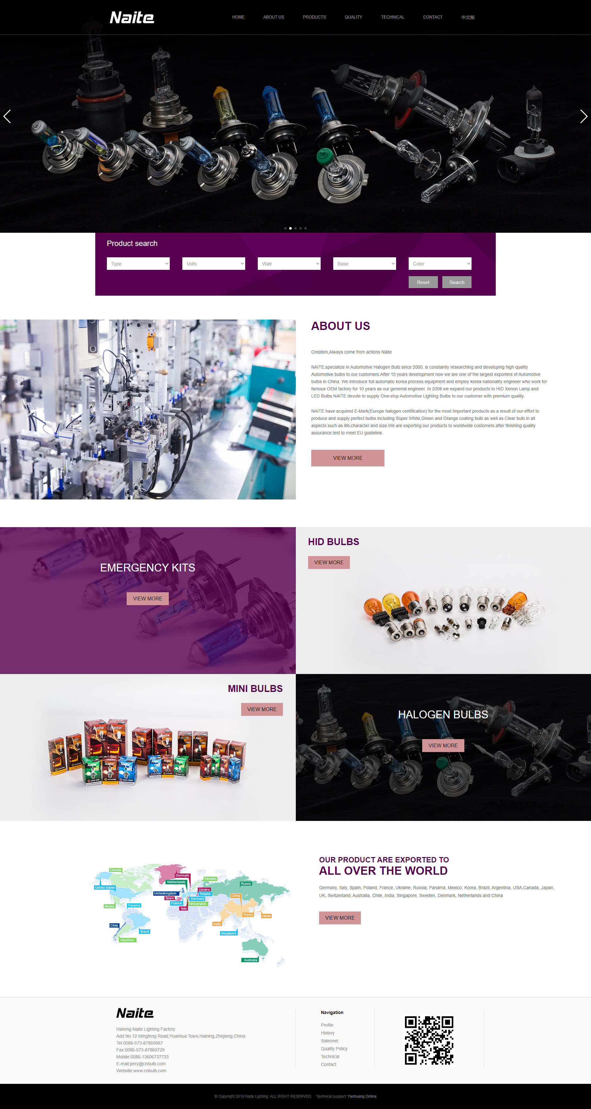 Naite公司自2000年开始专业生产汽车卤素灯泡,一直致力于为客户研发高品质的汽车灯泡,经过15年的发展,现已成为中国最大的汽车灯泡出口企业之一。