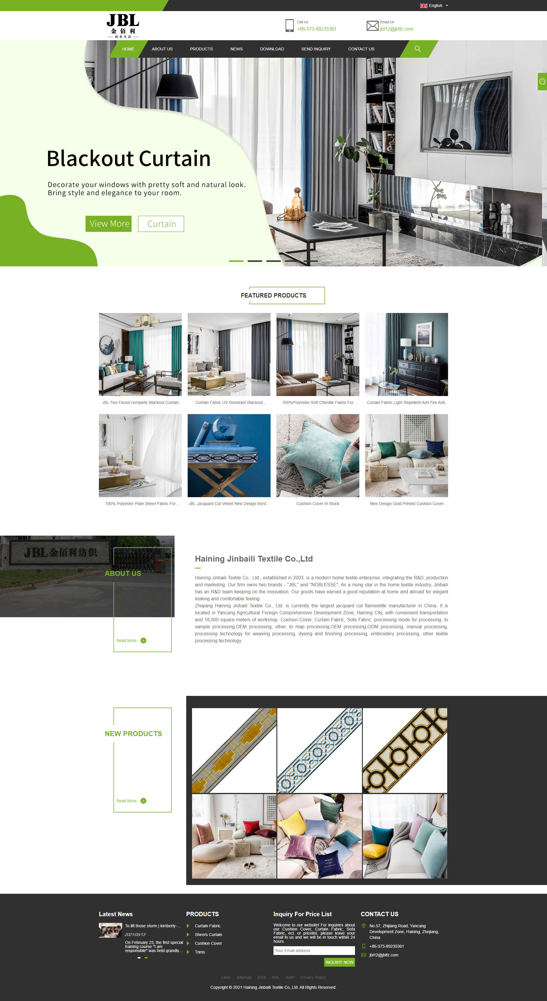 Haining Jinbaili Textile Co., Ltd., established in 2003, is a modern home textile enterprise, integrating the R&D, production and marketing. Our firm owns two brands - "JBL" and "NOBLESSE". As a rising star in the home textile industry, Jinbaili has an R&D team keeping on the innovation. Our goods have earned a good reputation at home and abroad for elegant looking and comfortable feeling.